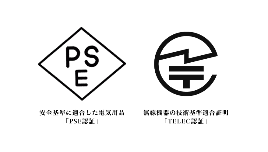 高性能のアンプとブルートゥース機能を搭載しており、皆様が安全・安心にご利用いただけるよう、日本国内での電気用品安全法「PSE認証」と無線設備に付いている技適マークの 「TELEC認証」を取得しております。